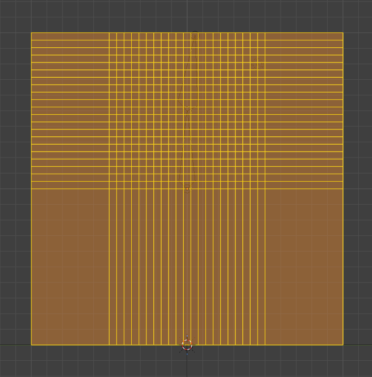 Here you can see how I added “resolution” to the deformation area using loop cuts. I started with four vertical loop cuts and one horizontal cut in the center. After that, you have regions that can be cut even further. The loop cuts happen inside your previous loop cuts. Then, I added ten more horizontal and ten more vertical cuts. This might be overkill for games, but it looks good to me!
